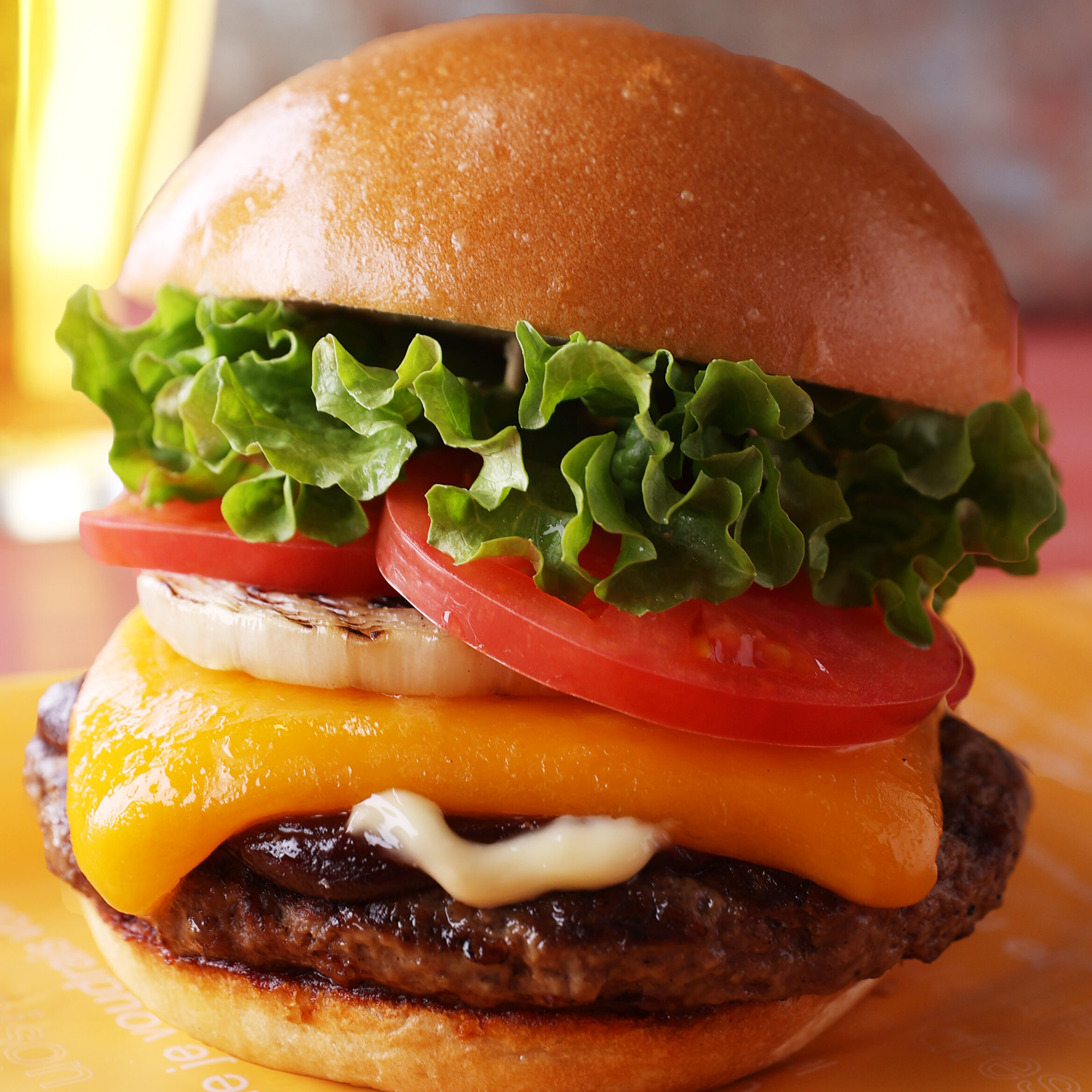 マウイオニオン甘みとフルーツの酸味が特徴の自家製バーベキューソースが、濃厚でコクのある厚切りレッドチェダーチーズと絡み合う深い味わいの一品です。